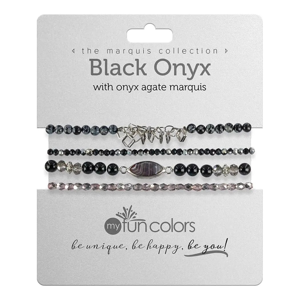 Gemstone Bracelet Set - Black Onyx with Onyx Agate Marquis and Silver accents - MR1252S